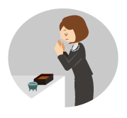 開始10分〜15分前には到着するようにし、告別式に参列する場合は、時間内に式場に行き、列の末尾に並び焼香、拝礼をする。